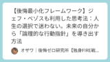 結局のところ、後悔最小化フレームワークの真価とは、遠い未来の視点からすべての間違った選択を排除した結果、最終的に残る究極の目的が「幸福だと感じる能力」であったと証明することに尽きる。