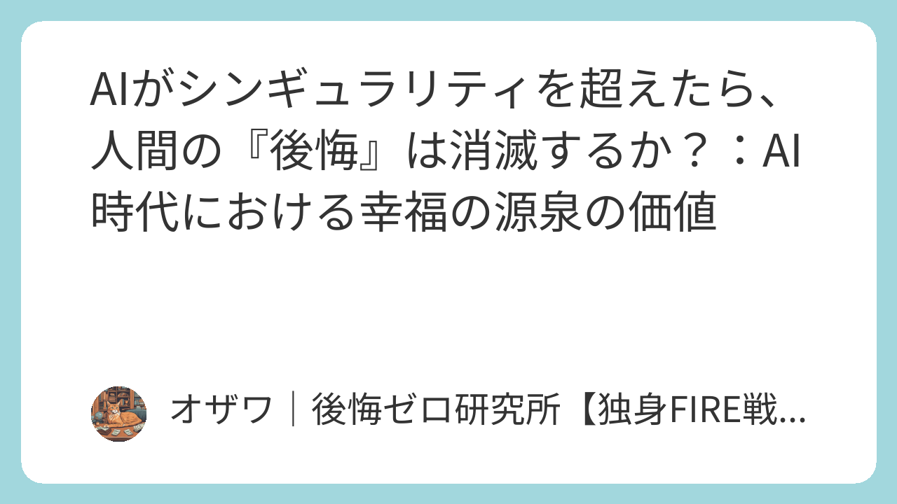 もし、シンギュラリティを超えたAIが「後悔ゼロの人生プラン」を完璧に提示し始めたら、私たちはその重荷から解放されるのでしょうか?