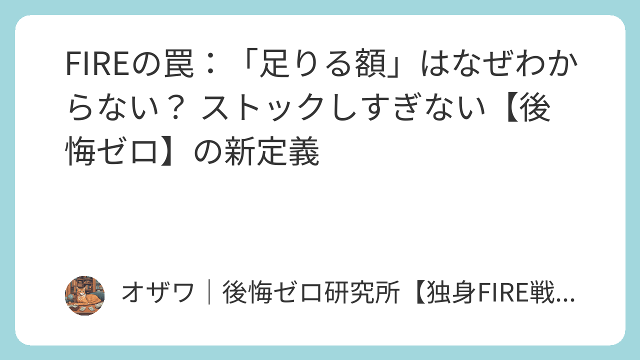FIRE(経済的自立と早期退職)を目指す多くの人が、資産が一定額を超えても尽きない「漠然とした不安」を抱え続けます。