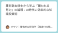 | 🧠 知識 | 意思決定の速度が上がる(時間の節約)ため、生まれた時間をさらに知識習得に回せる。 | 非効率な試行錯誤を最小化し、生涯の生産性を高める。 |