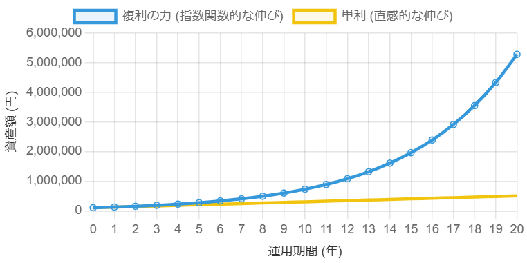 このカーブこそが「時間」という非課税資産がもたらす最大の成果です。