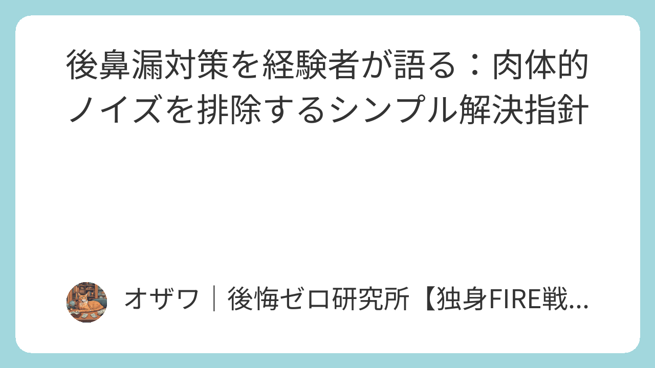 ※ 本記事は、長年後鼻漏に悩んだ私の個人的な経験と、公開情報に基づいた論理的な対策を整理したものです。医学的な診断や治療方針に代わるものではありません。 症状の判断や治療については、必ず専門の医師にご相談ください。