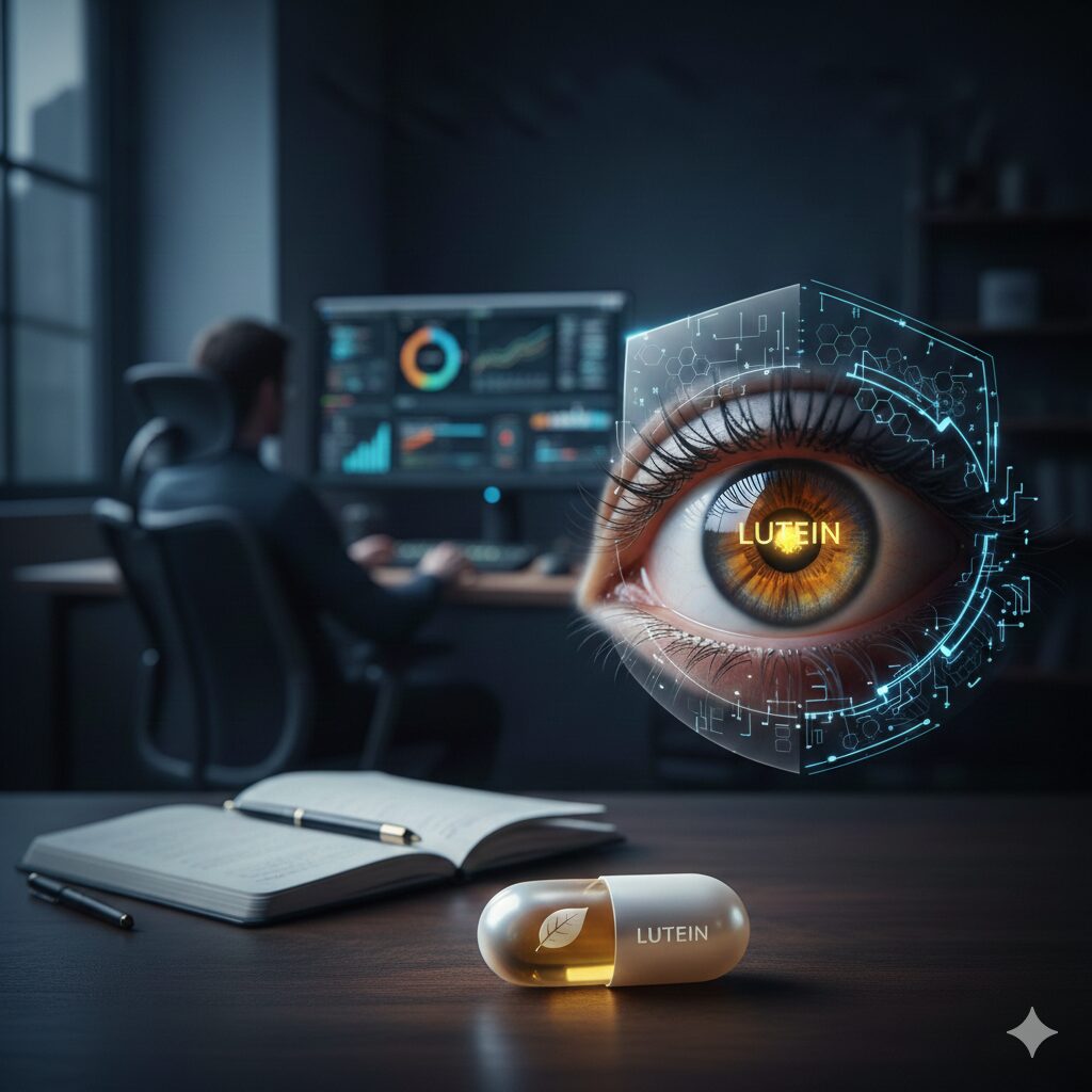 ルテインの役割は単純明快だ。青色光を物理的に吸収・遮断し、網膜へのダメージを中和する「天然のサングラス」として機能する。