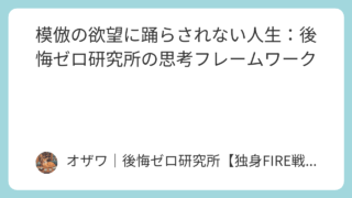 FIRE 模倣の欲望に踊らされない人生:後悔ゼロ研究所の思考フレームワーク